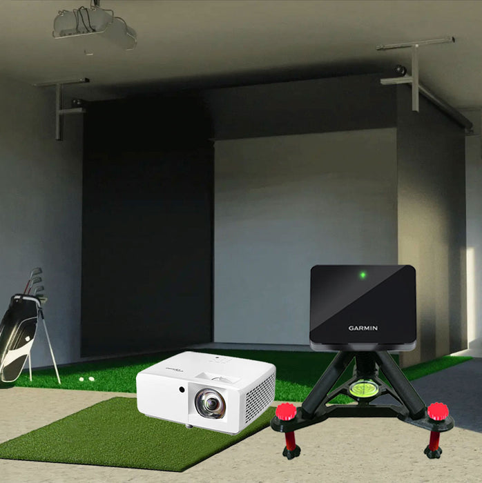 📦 Includes 5x5 Premium Hitting Mat, Landing/Putting Turf, Alignment Stand (FREE!) & Optoma ZW350ST HD Golf Projector (Option to Upgrade to Optoma GT2000HDR to Allow for Keystoning).