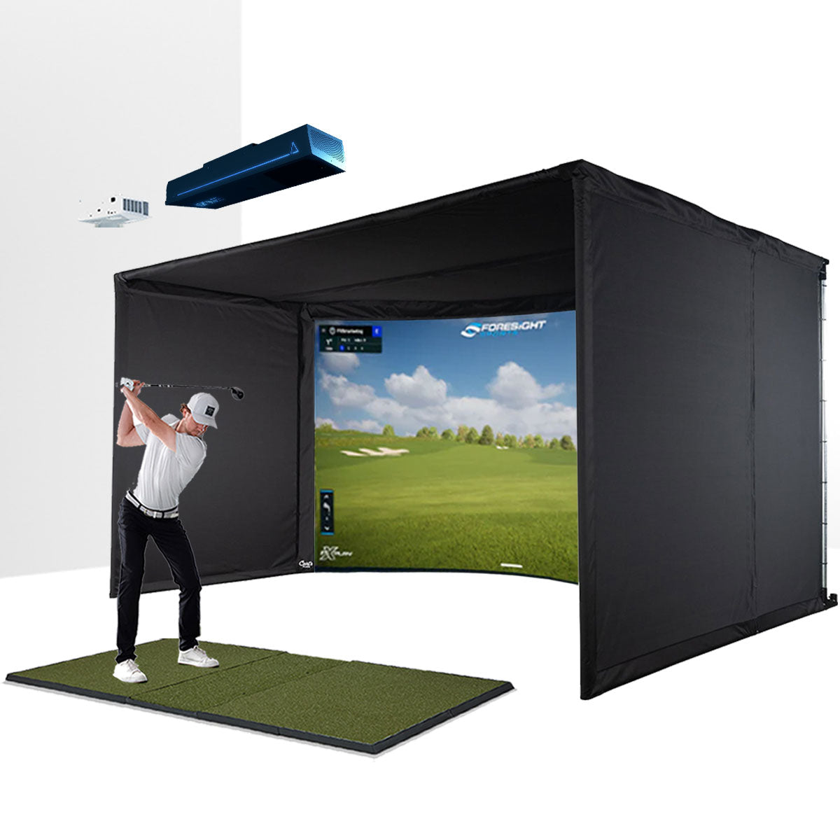 TruGolf APOGEE with PlayBetter SimStudio™ OVERHEAD Premium Home Golf Studio Package with Carl's Place Curved Enclosure